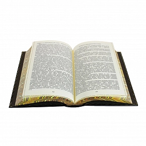 Подарочное издание в переплете ручной работы из натуральной кожи с трехсторонним золотым обрезом. Оформлена художественным литьем и ковкой ручной работы.