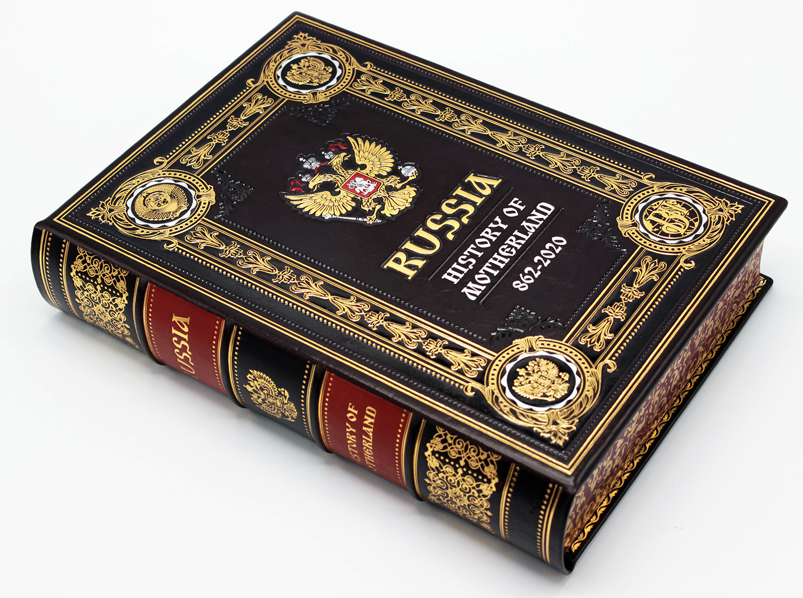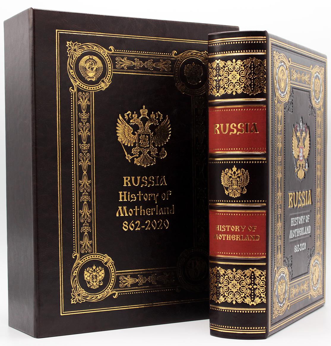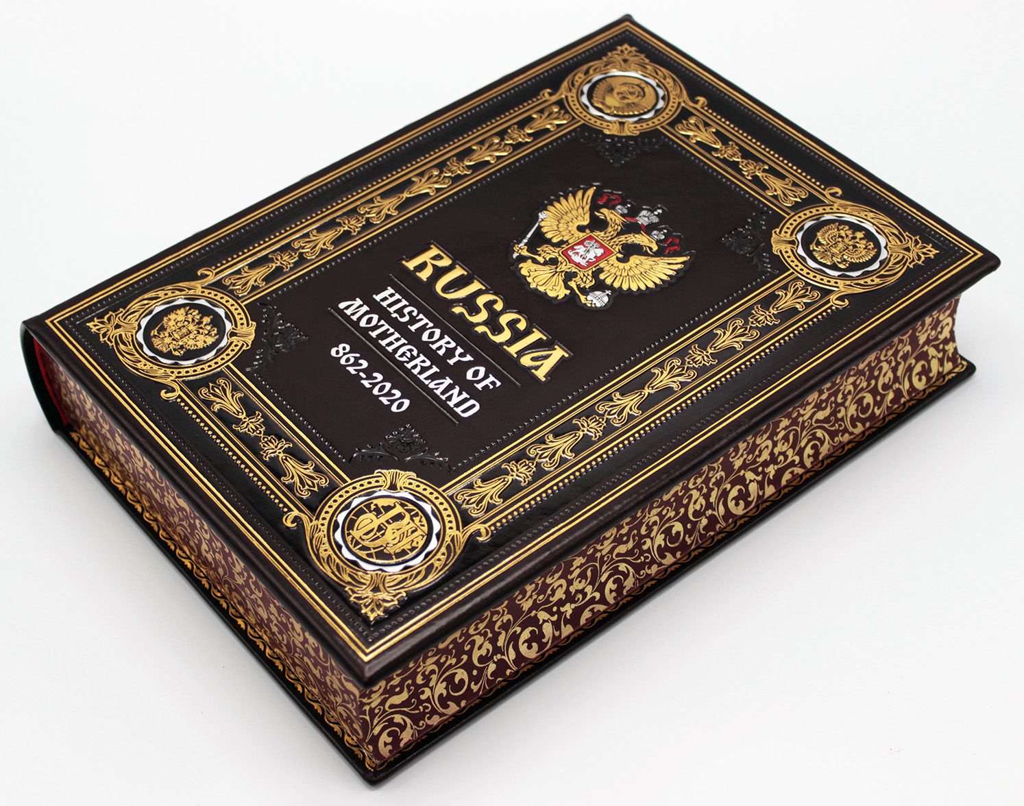 Подарочная книга «Russia History of Motherland 862-2020» содержит краткое изложение важнейших исторических периодов Российской истории. Описание начинается с древних времен, когда образовалась Русское государство со столицей в г. Новгороде в 862 году и заканчивается нынешним временем. Большое количество интересных иллюстраций, описаний важных исторических событий, делает эту книгу хорошим гидом по эпохам развития нашей страны, общественной жизнью и великим открытиям российских ученых. Книга получилось очень интересной и увлекательной, отлично послужит наглядным справочником по истории нашей страны, может использоваться в образовательных целях.