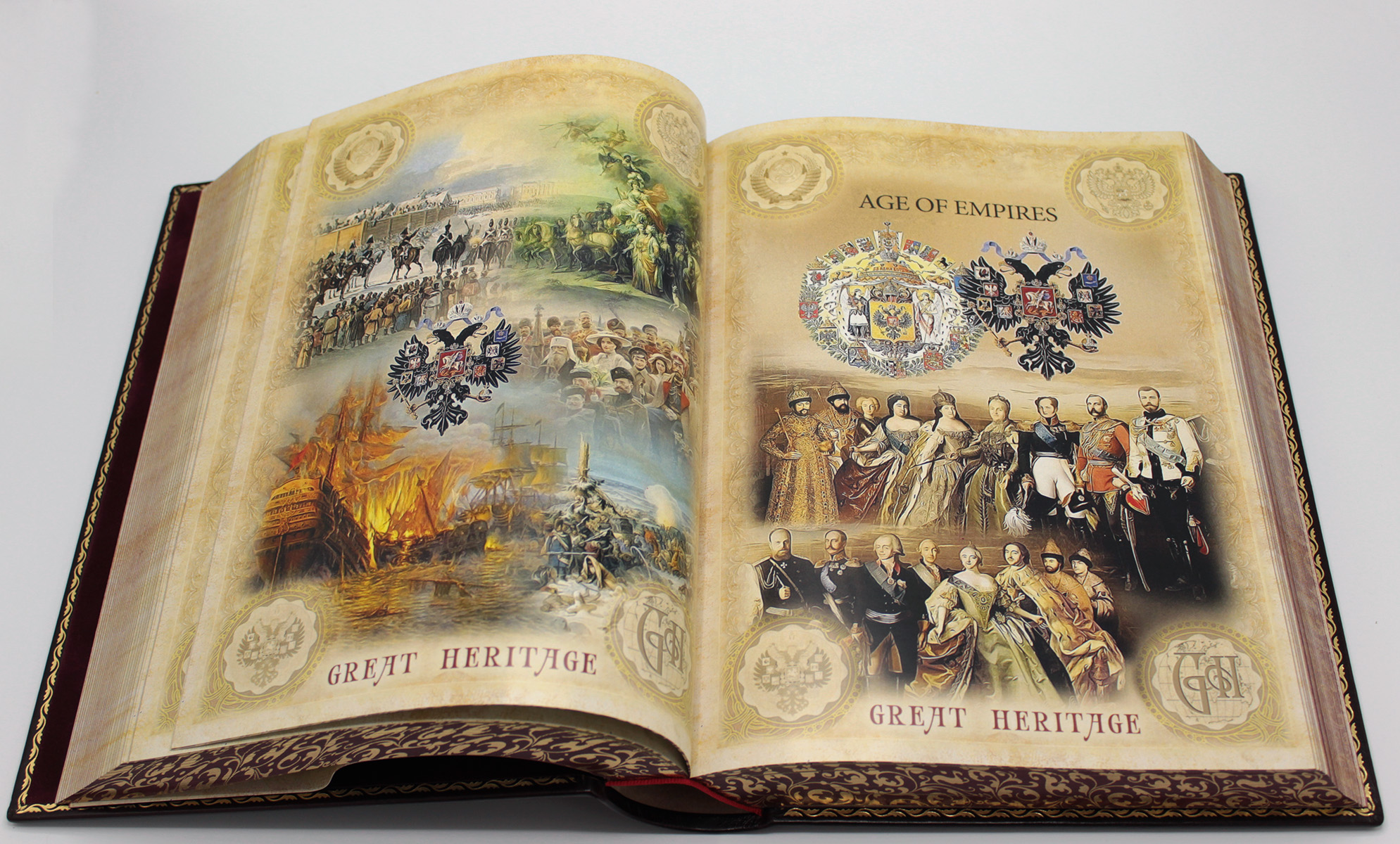 Подарочная книга на английском языке "Россия. История Отечества" / "Russia History of Motherland" АННОТАЦИЯ Подарочная книга «Russia History of Motherland 862-2020» содержит краткое изложение важнейших исторических периодов Российской истории. Описание начинается с древних времен, когда образовалась Русское государство со столицей в г. Новгороде в 862 году и заканчивается нынешним временем. Большое количество интересных иллюстраций, описаний важных исторических событий, делает эту книгу хорошим гидом по эпохам развития нашей страны, общественной жизнью и великим открытиям российских ученых. Книга получилось очень интересной и увлекательной, отлично послужит наглядным справочником по истории нашей страны, может использоваться в образовательных целях. ОПИСАНИЕ Исторический французский стиль переплета, рельефное тиснение по коже цветное и блинтовое, книжный блок отшлифован и тонирован с нанесением русского орнамента золотом. Книга отпечатана на высококачественной бумаге для цветной печати. Вес 6 кг