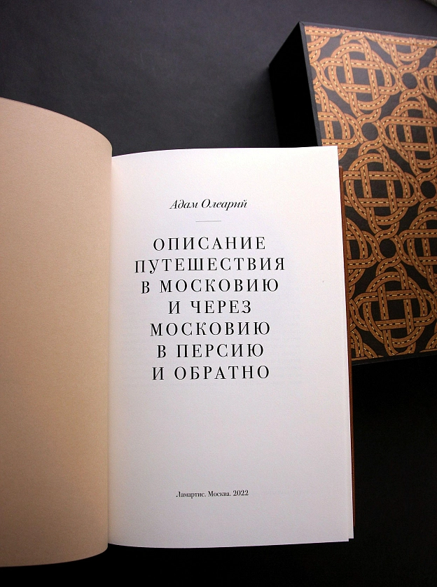 НАЗВАНИЕ АННОТАЦИЯ Отчет Адама Олеария о путешествиях в составе шлезвиг-голштинского посольства в Московию и Персию считается лучшей иностранной книгой о России XVII в. Главные ее достоинства – это немецкая педантичность автора и богатейший иллюстративный материал, которым Олеарий потрудился снабдить свое сочинение, наняв для этого искуснейших граверов. В результате его книга читается как неспешная и обстоятельная русская повесть с зарисовками о жизни в эпоху, когда ни жанра повестей, ни фотографии еще не существовало на свете. А историки ценят ее за уникальность и достоверность сведений о всех сторонах русской жизни того времени (за вычетом тех немногих глав, где Олеарий прибегает к пересказу с чужих слов о делах минувших дней). Олеарий был ученым-энциклопедистом, а также полиглотом, картографом, этнографом и одаренным рисовальщиком, наделенным экстраординарной наблюдательностью. Это по его проекту был изготовлен уникальный глобус с планетарием внутри, позже подаренный Петру I для Кунсткамеры в новой российской столице. ОПИСАНИЕ Переплет ручной работы из натуральной кожи. Составной футляр ручной работы: искусственная кожа, дизайнерская бумага. Формат 168×260 мм Тираж 100 нумерованных экземпляров Черно-белые иллюстрации Бумага Olin Regular (Франция) Крапленый обрез Переплет украшен тиснением золотой и пигментной фольгой, на корешке наклейка из контрастной кожи