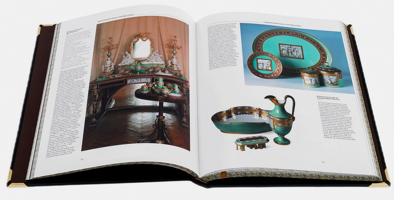 Подарочная книга "Русский императорский фарфор" (в коробе на англ.языке) ОПИСАНИЕ Подарочное издание на английском языке "Russian Imperial Porcelain" — не просто книга, а бесценный альбом для коллекционеров, дипломатов, историков и всех, кто понимает подлинную роскошь как причастность к великой культуре. Оформленное в чёрный переплёт из натуральной кожи с тиснением и золотыми уголками, это издание хранится в индивидуальном футляре, обтянутом той же кожей. Обложку и короб украшают виньетки с репродукциями императорского фарфора в пышных золочёных рамах, отсылающих к эстетике дворцового стиля XVIII–XIX веков. В 1744 году в Санкт-Петербурге была основана первая в России порцелиновая мануфактура — «к славе Российской» и «для удовольствия Ея Императорского Величества». Так началась история Императорского фарфорового завода, насчитывающая уже более 250 лет. Создание фарфора в Европе воспринималось как поиски философского камня — материала столь же драгоценного, как золото. «Фарфоровая горячка» охватила Мейсен, Вену, Петербург. Этот хрупкий и совершенный материал стал уделом только избранных. Он был неотъемлемой частью императорской повседневности: сервировал парадные обеды, украшал залы, становился дипломатическим даром и интимным посланием. Книга не просто рассказывает, но воссоздаёт атмосферу императорской эпохи — через формы, орнаменты, придворные вкусы и личные пристрастия венценосных заказчиков. Иллюстрации из архивов музеев и частных коллекций, сопровождаемые подробными историческими комментариями, делают издание полноценным художественным альбомом. Этот том — интеллектуальный и эстетический подарок человеку с глубоким пониманием российской культурной традиции.