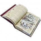 Французский стиль кожаного переплета, уникальное тиснение по коже, полностью ручная работа. Отпечатана на дизайнерской бумаге с многочисленными иллюстрациями, блок страниц отшлифован, тонирован с нанесением тематических рисунков. Подарочный короб в аналогичном оформлении.