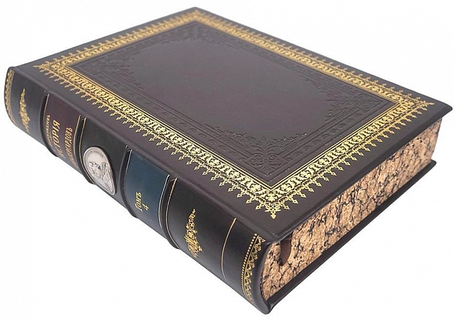 Подарочная книга в кожаном переплете "История кавалергардов" в 4 томах АННОТАЦИЯ «История кавалергардов» - книга, которую написал российский историк. Она была написана по случаю столетнего юбилея Кавалергадского полка, имени Её Величества Государыни Императрицы Марии Фёдоровны. Включает в себя сборник биографий кавалергардов. ОПИСАНИЕ Особенности оформления: кожаный переплет, ручная работа, форзац из дизайнерской бумаги, 4 бинта на корешке, торшонированный золотой обрез блока, золотой каптал из натуральной кожи, цветные иллюстрации, ляссе. Размеры: 23.5 × 20 × 24 см.