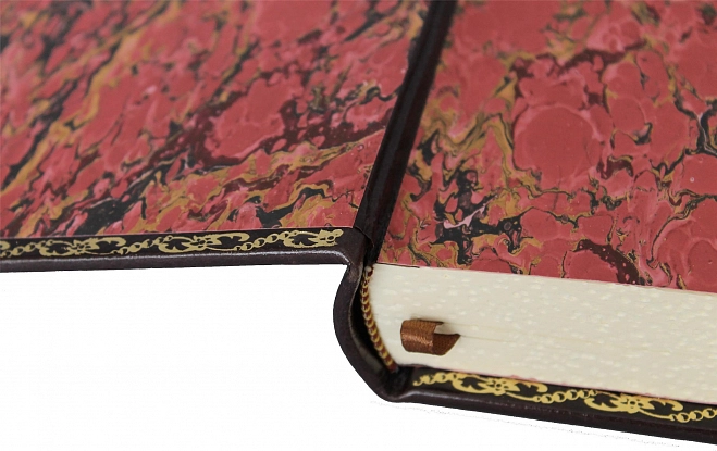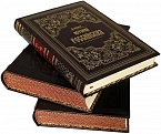 Подарочные книги в натуральном кожаном переплёте, золотое тиснение, торшонированный обрез с гравировкой верхней стороны, дизайнерская бумага, ляссе.