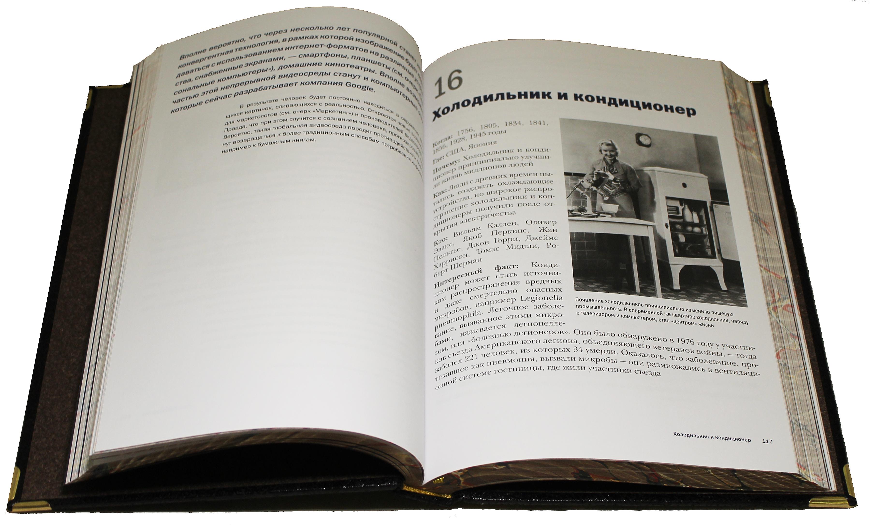 Подарочные книги "Технологии, которые изменили мир" АННОТАЦИЯ XX век стал веком стремительного развития технологий: в нашу жизнь вошли и навсегда изменили ее телевидение и интернет, мобильная связь и социальные сети, антибиотики и пластическая хирургия. Со временем значение некоторых технологий превзошло самые смелые ожидания. К примеру, сеть интернет, созданная для обеспечения надежной связи во время ядерной войны, на наших глазах становится одним из главных двигателей экономики, политики и культуры. Книга рассказывает об истории появления технологий, без которых мы уже не можем представить себе нашу жизнь: социальные сети и скайп, кредитные карты и электронные платежи, лазер и ультразвук, копировальный аппарат и микроволновая печь. Но мы не стали ограничиваться техническими новинками. Отдельные главы посвящены таким гуманитарным и социальным технологиям, как система Станиславского, психоанализ или маркетинг, которые оказали и продолжают оказывать ощутимое влияние на нашу жизнь. ОПИСАНИЕ Цельнокожаный переплёт ручной работы, украшен иллюстрированной вставкой из цветного металла. Текст книги напечатан на мелованной бумаге и дополнен чёрно-белыми иллюстрациями. Обрез оформлен в технике "Перо павлина". Ляссе из шёлковой ленты. Форзац цельный из дизайнерской бумаги. Книга представлена в оригинальной подарочной упаковке. Цветовое сочетание переплёта и упаковки может отличаться от представленных на фото.