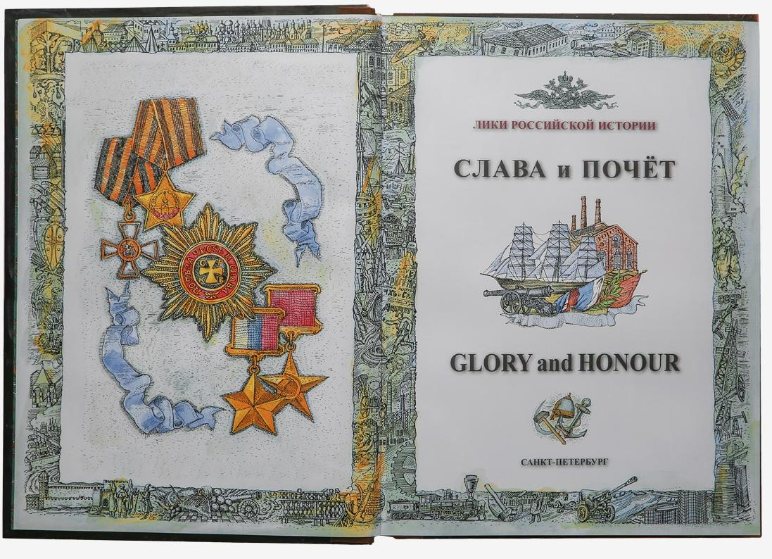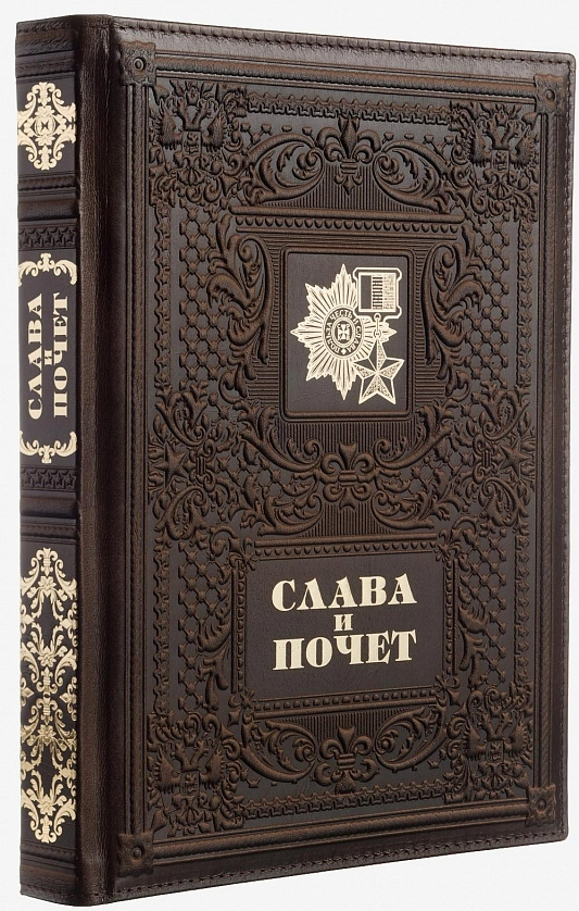Подарочная книга "Слава и Почет" АННОТАЦИЯ Книга посвящена людям, которые не просто внесли свою лепту в российскую историю, но, по сути, своими делами творили историю Отечества. Книга имеет богатый иллюстративный ряд и рассчитана на широкий круг читателей. ОПИСАНИЕ Переплет ручной работы. Натуральная переплетная кожа. Каптал из шелковых нитей. Ляссе шелковое. Обрез окрашенный. Украшение переплета: тиснение полиграфической фольгой, конгревное тиснение.