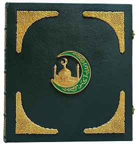 Подарочная книга "Коран" Большой с филигранью (золото), гранатами и литьем в замшевой шкатулке
