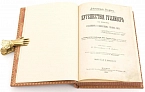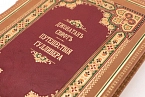 Книга (формат 23,5 х 30 см) исполнена по старинной французской технологии; Переплет цельнокожаный, из натуральной шагрени (Франция); Бумага Olin, кремовая; Блок сшит на пяти шнурах; Форзац выполнен из мраморной бумаги ручного крашения; Дублюра окатана вручную 23-каратным золотом; Обрез блока окрашен и гравирован вручную; Ляссе шелковое, каптал ручного плетения; Индивидуальный футляр.
