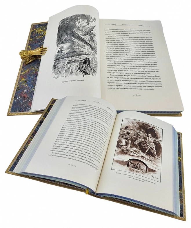 Подарочная книга "Двадцатый век. Электрическая жизнь" Альбер Робида АННОТАЦИЯ Двадцатый век. Электрическая жизнь. Альбер Робида́ (1848–1926) — французский иллюстратор и писатель-фантаст, обладавший мощным даром предвидения. Пророчества художника, который в ХIХ веке предсказал основные изобретения и события ХХ века, воспринимались его современниками как шутки. Они были им изложены в трилогии футуристических романов: «XX век» (1883), «Война в XX веке» (1887) и «Двадцатый век. Электрическая жизнь» (1890). Серьезно его воспринял молодой Ленин, воплотивший в жизнь немало «шуток» художника, вплоть до заимствования его лозунгов. Так, в футурологии Робиды неоднократно обыгрываются формулы идеального будущего — «власть народа и электрификация», а важнейшим из искусств у него является кино. Популярный французский художник «развлекательного жанра» предсказал танки и авиацию; дистанционное обучение и дистанционные покупки; видеотелефоны, домофоны, видеодиски, видеотеки, телевидение, реалити-шоу и системы видеонаблюдения; ядерное, химическое, бактериологическое оружие и противогаз; небоскрёбы, гипсокартон и «пробные браки». А так же мировые войны, революцию в России, чернобыльскую катастрофу и загрязнение окружающей среды. И все же, несмотря на свою пессимистичность, в целом пророчества Робиды и его рисунки забавляли современников. Особенно развлекало читателей казавшееся невероятным утверждение, что в конце XX столетия в Англии премьер-министром будет женщина! Существует легенда, что Робида утратил популярность во время Первой мировой, когда его прогнозы начали сбываться с ужасающей точностью, он сам испугался своих пророческих творений и перестал рисовать. На русском языке книга «Двадцатый век: электрическая жизнь» была издана в типографии братьев Пантелеевых в 1894 году. Книга сразу же стала популярной. В своих воспоминаниях Мария Ильинична Ульянова пишет, что в их семье была книга «известного французского карикатуриста Робиды («Электрическая жизнь»), которую Володя любил рассматривать». И «Электрический мир» Робиды, где светлое будущее выглядело гораздо зримее, чем у наукообразного Маркса, повлияло на Ленина не меньше «Коммунистического манифеста». «ХХ столетие. Электрическая жизнь» — это развлекательный сюжет на фоне детально точных предсказаний. Читателей XIX века завораживали не интриги сюжета, а иллюстрации Робиды: громадные воздушные корабли, воздушные состязания на «винтовых самолетах», воздушных экипажах и кабриолетах, изображения метрополитена, телефоноскопа, фонографа, орудий химической артиллерии, торпед и подводных броненосцев и прочих технических чудес XX века. При этом публику очень забавляли описания, где «некоторые ревнивые мужчины», чтобы присматривать за женами, помещают в дом «миниатюрные и совершенно незаметные фотофонографические приборы... облегчающие щекотливое дело тайного надзора». Так, мимоходом, в своей книге Робида перечисляет практически все области применения электричества, которое определяет дальнейшее развитие цивилизации; предсказывает одиннадцать миллионов жителей Парижа при росте азиатского и африканского населения. При строительстве небоскребов «из стекла и искусственного гранита» используются «огнеупорные пластмассы и трубчатый алюминий» и ставить светящиеся маяки на крышах. В не