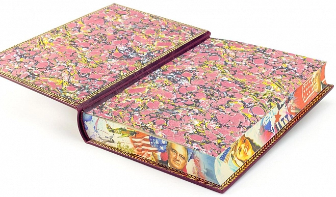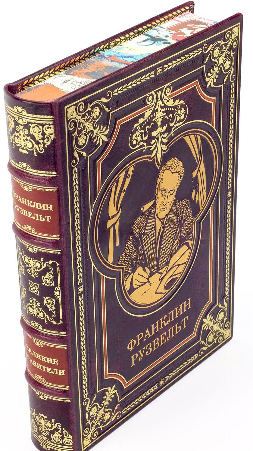 Подарочная книга "Франклин Рузвельт" АННОТАЦИЯ Книга Франклин Рузвельт в кожаном переплете. Ручная работа наших мастеров - кожаный переплет, индивидуальный стиль оформления, тиснение золотом, в ручную обработан и тонирован блок страниц с нанесением рисунка в стиле плакатной живописи. Отличный, дорогой подарок для человека увлекающегося историей. Книгу можно купить у нас, доставка бесплатно в день обращения, также вы можете посетить мастерскую и посмотреть как создаются такие удивительные книги. ИСПОЛНЕНИЕ Французский, исторический стиль переплета, тиснение цветное и золотом, блок страниц отшлифован и тонирован в стиле плакатов советского времени. Все материалы высокого качества, плотная, белая, плотная бумага, натуральная переплетная кожа. Вы также можете заказать ручной кожаный переплет любых своих книг, собраний сочинений, оформить личную библиотеку. Наша переплетная мастерская полностью подготовит дизайн, стиль, бесплатно создадим для Вас Экслибрис. Мы также реставрируем старые книги, создаем деловую атрибутику, ежедневники в кожаном переплете. Выбранные книги Вы можете осмотреть у нас в мастерской, посмотреть как они создаются или же заказать выезд менеджера для ознакомления с нашими книгами в кожаном переплете. ОПИСАНИЕ Франклин Делано Рузвельт в США также известен под инициалами — ФДР (англ. FDR), 32-й президент США, одна из центральных фигур мировых событий первой половины XX века, возглавлял США во время великой депрессии и Второй мировой войны. Единственный американский президент, избиравшийся более чем на два срока. Начиная с Джорджа Вашингтона, первого президента США, в Америке существовала негласная традиция, ставшая позже законодательной нормой: главы государства ограничивают свое пребывание у власти двумя сроками. Только один человек в американской истории нарушил это правило. Президент Франклин Делано Рузвельт оставался в Белом доме четыре срока подряд, при том что все они пришлись на тяжелые для американцев времена. На долю Рузвельта выпало восстановление экономики США после Великой депрессии — тяжелейшего кризиса в американской истории и Вторая мировая война. Свои первые президентские выборы Рузвельт выиграл, уже будучи прикованным к инвалидной коляске из-за перенесенного полиомиелита, однако ни разу не потерял силы духа и сумел провести страну через все испытания. В историографии его неизменно ставят в один ряд с наиболее выдающимися президентами США Джорджем Вашингтоном, Томасом Джефферсоном и Авраамом Линкольном. После нападения Германии на СССР выступил с заявлением о поддержке Соединёнными Штатами Советского Союза.