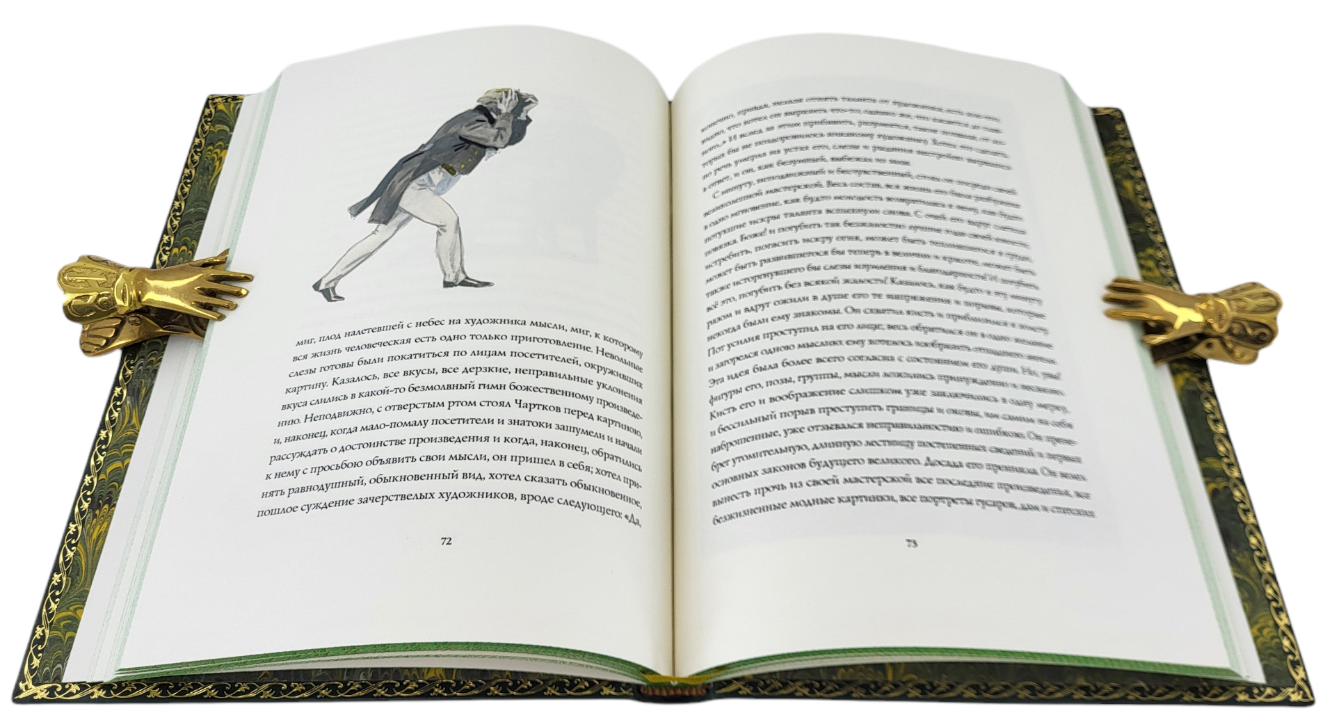 Коллекционное издание. Москва. 2021. Издательство Столяровых. Эксклюзивный переплёт мастерской «Кожаная мозаика». Тираж 90 номерных экземпляров. Новинка в серии «Иллюстрированная классика» – «Портрет», одна из петербургских повестей Николая Гоголя, которая принадлежит к характерному для романтизма жанру повести о преступных художниках, восходящему к гофмановским новеллам. Иллюстрации Владимира Панова. Формат 23 х 23,5 см.