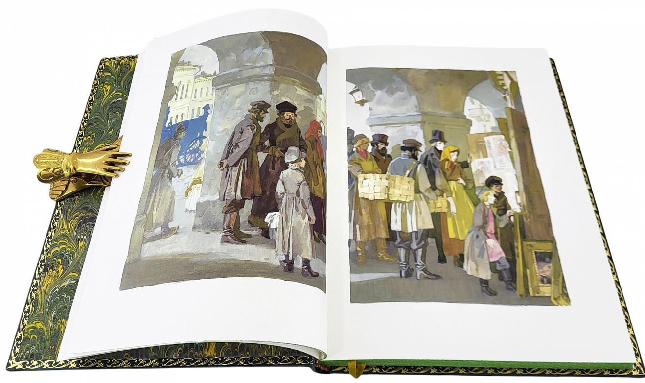 Коллекционное издание. Москва. 2021. Издательство Столяровых. Эксклюзивный переплёт мастерской «Кожаная мозаика». Тираж 90 номерных экземпляров. Новинка в серии «Иллюстрированная классика» – «Портрет», одна из петербургских повестей Николая Гоголя, которая принадлежит к характерному для романтизма жанру повести о преступных художниках, восходящему к гофмановским новеллам. Иллюстрации Владимира Панова. Формат 23 х 23,5 см.