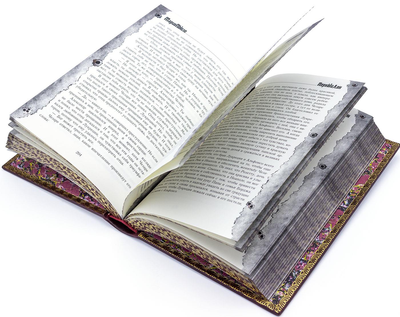 Подарочное издание, французский стиль кожаного переплета, ограниченный тираж. Отпечатан на немецкой бумаге Ozon Ivory, индивидуальный дизайн страниц и иллюстраций, рельефное и цветное тиснение по коже. Книжный блок отшлифован, тонирован с нанесением орнамента. Полностью ручная работа.