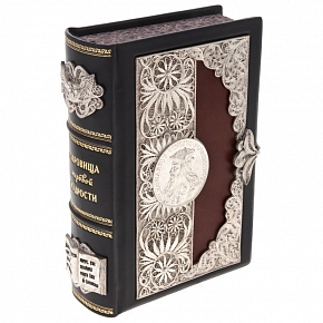 Подарочная книга "Библия" Большая с литьем и филигранью (серебро) и топазами в замшевой шкатулке