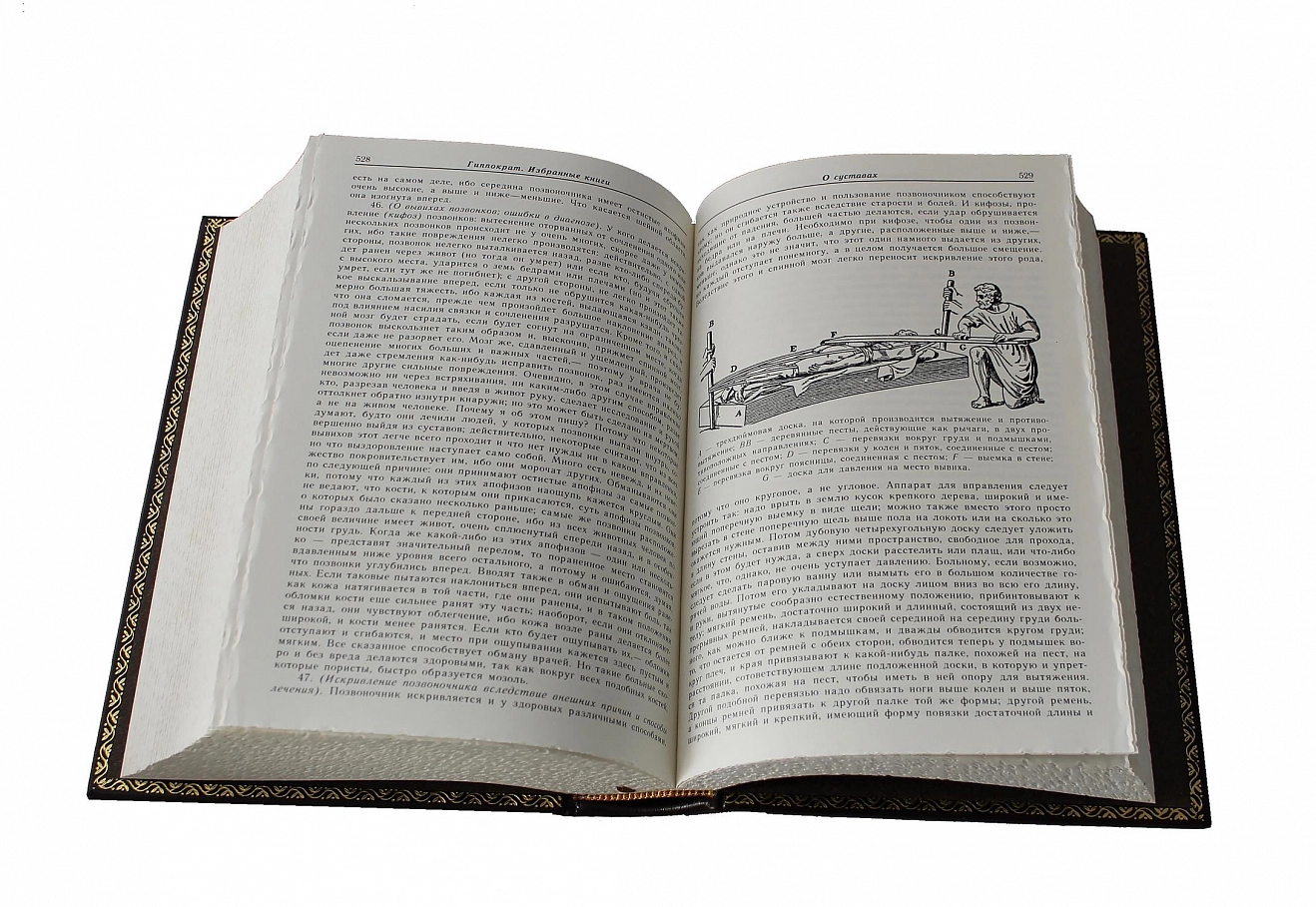 Гиппократ. Избранные книги АННОТАЦИЯ В оформлении переплета этого репринтного издания применяется сочетание блинтового и золотого тиснения, выполненных на высококачественной натуральной коже. Книжный блок отпечатан на дизайнерской бумаге высокого качества. Богато оформленные дублюрами составные форзацы. Торшированый с золотым тиснением обрез, ляссе. Огромный труд перевода всех книг Гиппократа с греческого языка, предпринятый проф. В. И. Рудневым еще в 1902 г. и в настоящее время законченный, позволил Биомедгизу осуществить впервые на русском языке издание избранных книг Гиппократа и таким образом заполнить существенный пробел в русской научной литературе. ОПИСАНИЕ Цельнокожаный переплёт ручной работы, украшен золотым и блинтовым тиснением. Корешок декорирован бинтами. Текст книги напечатан на офсетной бумаге и дополнен чёрно-белыми иллюстрациями. Обрез торшонирован с нанесением орнамента. Ляссе из шёлковой ленты. Форзац цельный из дизайнерской бумаги. Книга представлена в оригинальном подарочном коробе, перчатки и, по желанию, сертификат (может быть именным) в комплекте. Цветовое сочетание переплёта и упаковки может отличаться от представленных на фото.