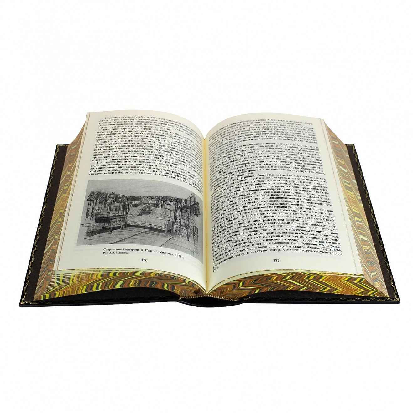 Татары. Народы и культуры АННОТАЦИЯ Труд написан ведущими учеными России и представляет собой наиболее полную сводку историко-этнографических знаний о татарах – втором по численности народе Российской Федерации. Публикация дополнена материалами новых исследований в области национальной истории и культуры татар Волго-Уральского региона РФ с привлечением сравнительных материалов по Западной Сибири, Нижнему Поволжью и ряду государств ближнего зарубежья. Значительно обновлен объем источников по этнической истории и исторической демографии, по традиционному хозяйству и быту, материальной и духовной культуре, по смежным дисциплинам: антропологии, диалектологии, лингвистике, этносоциологии. ОПИСАНИЕ Цельнокожаный переплёт ручной работы, украшен золотым и блинтовым тиснением. Корешок декорирован бинтами. Текст книги напечатан на бумаге Palatina Avorio 100 Австрийского производства и дополнен цветными иллюстрациями. Обрез оформлен в технике "Перо павлина". Ляссе из шёлковой ленты. Форзац цельный из дизайнерской бумаги. Книга представлена в оригинальном подарочном коробе, перчатки и, по желанию, сертификат (может быть именным) в комплекте. Цветовое сочетание переплёта и упаковки может отличаться от представленных на фото.