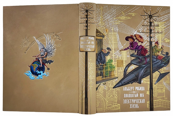 Подарочная книга «Электрическая жизнь» Альбер Робида (Эксклюзивный экземпляр с ручной росписью по коже)