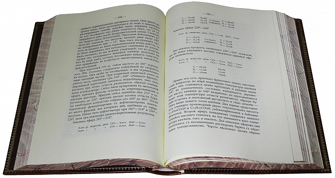 Подарочная книга "Нефть и нефтяная промышленность" Рагозин В. АННОТАЦИЯ "Нефть и нефтяная промышленность" В. И. Рагозина была выпущена в 1884 году в Санкт-Петербурге. Это научная работа, охватывающая различные теории происхождения нефти, физические и химические свойства, геологические условия ее залегания, историю развития нефтяной промышленности в России, Северной Америке и Европе. Целью издания ставилась популяризация нефти среди населения и привлечение внимания правительства к проблемам развивающейся отрасли. ОПИСАНИЕ Богато оформленное собрание, представлено в подарочном издании. Французский цельнокожаный переплёт ручной работы, украшен блинтовым и золотым тиснением. Корешок декорирован бинтами. Текст книги напечатан на бумаге Palatina Avorio 100 Австрийского производства . Обрез оформлен в технике торшонирование. Ляссе из шёлковой ленты. Форзац цельный из дизайнерской бумаги. Дублюра окатана золотом. Футляр кожаный, вдохновлён дизайном книги. Книга представлена в оригинальном подарочном коробе, перчатки и, по желанию, сертификат (может быть именным) в комплекте. Цветовое сочетание переплёта и упаковки может отличаться от представленных на фото.