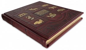 Подарочная книга "Атлас охотничьих и промысловых птиц и зверей СССР." (В 2 т. Эксклюзивный экземпляр с ручной росписью по коже)