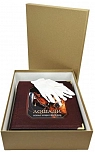 Книга представлена в оригинальном подарочном коробе, сделанном из мдф и обтянутым вручную высококачественной натуральной кожей. Цельнокожаный переплёт ручной работы, украшен иллюстрированной вставкой из цветного металла. Обложка двухуровневая. Металлические уголки дополняют дизайн и сохраняют книгу при использовании. Текст книги напечатан на мелованной бумаге и дополнен цветными иллюстрациями. Обрез оформлен в технике "Перо павлина”. Ляссе из шёлковой ленты. Форзац цельный из дизайнерской бумаги.