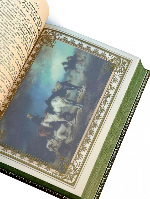 Подарочные книги "Охота в России во всех ее видах" АННОТАЦИЯ Книга Михаила Вавилова "Охота в России во всех ее видах" представляет собой уникальное и всеобъемлющее произведение, посвященное богатой традиции охоты в России. Это не просто руководство по охоте, а настоящая энциклопедия, охватывающая все аспекты этого древнего искусства, глубоко укоренившегося в русской культуре и истории. Михаил Вавилов, известный охотовед и писатель XIX века, создал труд, который по сей день остается одним из самых авторитетных источников информации об охоте в России. Его книга не только описывает различные виды охоты, но и погружает читателя в богатый мир русской природы, традиций и фольклора, связанных с охотой. ОПИСАНИЕ Описание переплета — Французский, цельнокожаный переплёт ручной работы, украшен цветной кожаной вставкой, а также золотым и цветным тиснением. Корешок декорирован бинтами. Текст книги напечатан на бумаге Palatina Avorio 100 Австрийского производства и дополнен цветными иллюстрациями. Обрез торшонирован с нанесением орнамента. Ляссе из шёлковой ленты. Форзац цельный из бумаги в технике "муар". Дублюра окатана золотом. Футляр кожаный, вдохновлён дизайном книги. Книга представлена в оригинальном подарочном коробе Цветовое сочетание переплёта и упаковки может отличаться от представленных на фото.