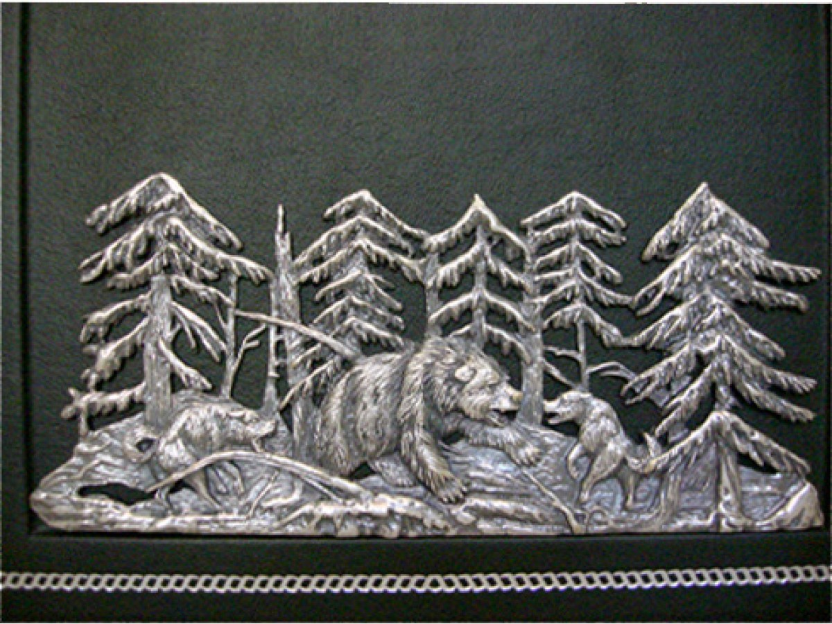 Русская охота. Экземпляр № 06 ППМ.17.029 АННОТАЦИЯ Книга печатается по тексту раритетного издания «Великокняжеская, царская и императорская охота на Руси» замечательного русского историка Николая Ивановича Кутепова. Четыре тома этого фундаментального произведения создавались с 1895 по 1911 год. Они содержат огромное количество информации не только об охоте, но и о быте, нравах России от старых времен до конца XIX века. При оформлении настоящего однотомного издания выбрано более 500 иллюстраций лучших российских и зарубежных художников. Это делает книгу особенно познавательной и интересной для всех, кто интересуется не только охотой, но и историей России. ОПИСАНИЕ Французский цельнокожаный переплет. Ручная работа. Цвет «Зеленая сосна». Форзац раздельный на кожаной слизуре. Обрез торшонированный серебряной фольгой. Тиснение - блинтовое, полиграфическая фольга. Каптал наборный шелковый, ручное плетение. Ляссе шелковая лента. Украшение переплета: ювелирные накладки - художественное литье, ручная работа - латунь, серебрение. Подарочный футляр.