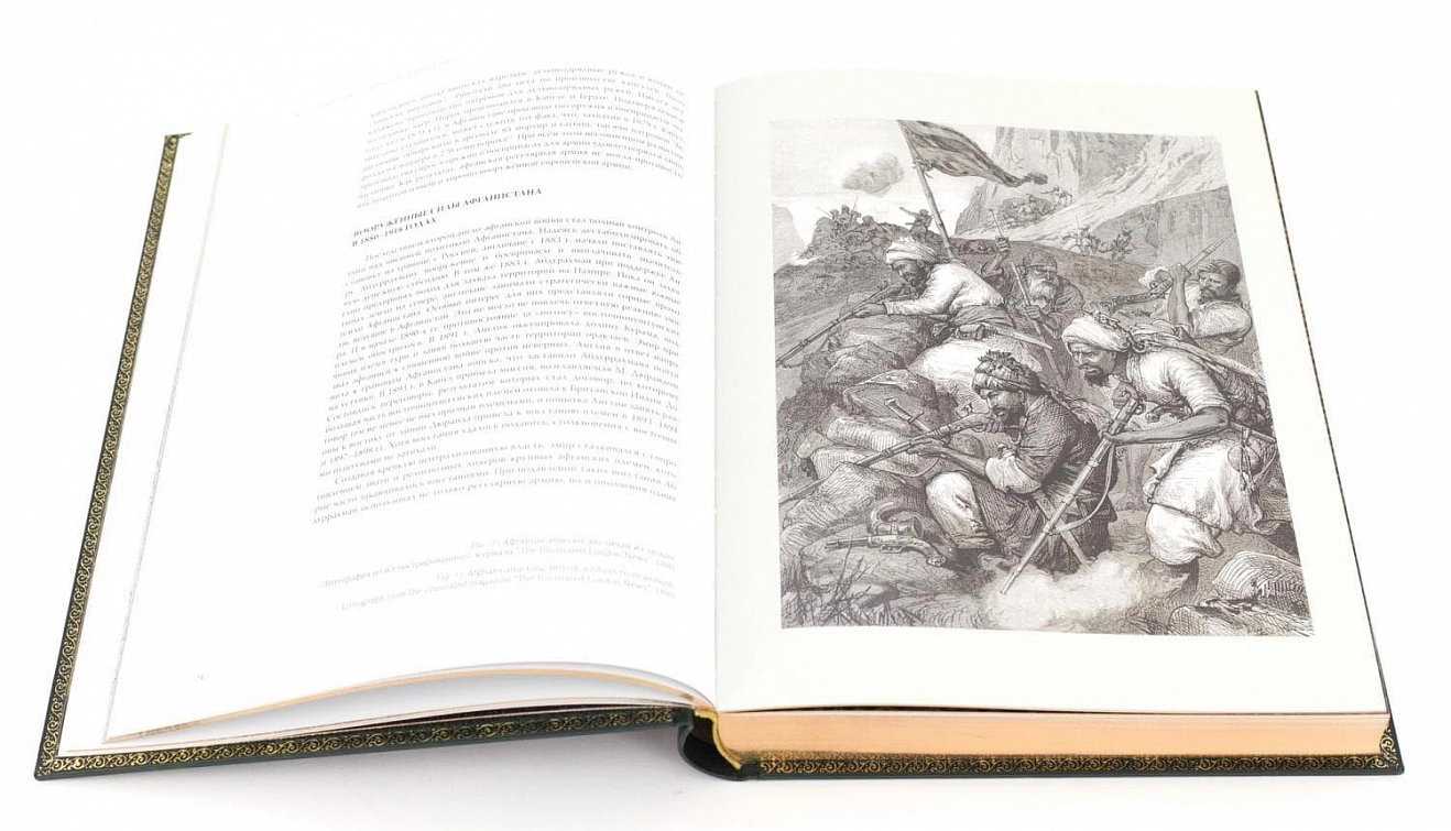 Подарочная книга «Холодное оружие Афганистана XIX начала XX веков» Милосердов Д.Ю. АННОТАЦИЯ В книге впервые раскрывается ранее детально не исследованная тема холодного оружия, бытовавшего в Афганистане. Вы познакомитесь с образцами этнического и армейского холодного оружия из частных и музейных коллекций, распространенного на территории Афганистана в XIX–ХХ вв., узнаете о военных традициях народов, населяющих эту страну, а также проследите этапы формирования армии Афганистана. Издание богато иллюстрировано литографиями, миниатюрами и фотографиями жителей Афганистана с оружием, а также фотографиями предметов вооружения, которые публикуются впервые. Книга рассчитана как на специалистов и коллекционеров, так и на широкий круг читателей, интересующихся темой восточного оружия. С-Пб. Издательство Атлант. 2019. ОФОРМЛЕНИЕ Переплет из натуральной кожи. Художественное цветное тиснение обложки и корешка. Золочёный с трёх сторон обрез. Ручная накатка орнамента по периметру форзаца.