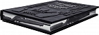 Составной переплет «Брадель», ручной работы, выполнен из натуральной кожи «Nero Zegna» производства итальянской кожевенной фабрики «Motta Alfredo». Обложка книги оформлена объемными узорами ручной продавки, вручную посеребренным высоким шрифтом, никелевыми хольнитенами (количество 23 штуки). Обрез книги выполнен в уникальной технологии художественной запечатки серебряной основы.