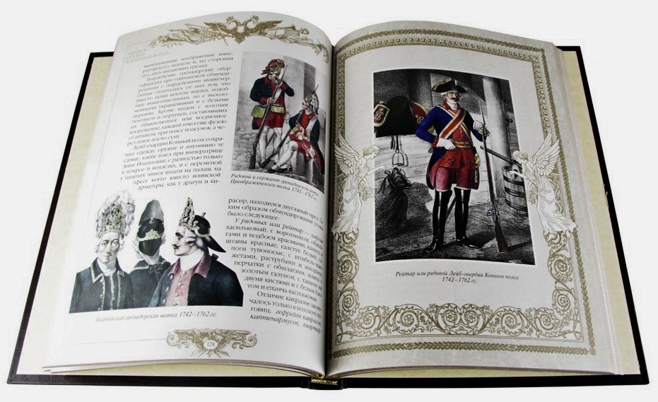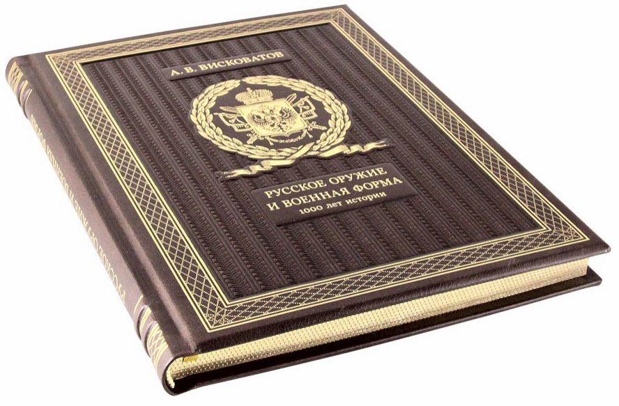Подарочная книга "Русское оружие и военная форма" Висковатов А.В. ОПИСАНИЕ Фундаментальный труд выдающегося военного историка, адъютанта Генерального штаба генерал-майора А. В. Висковатова (1804-1858) «Историческое описание одежды и вооружения российских войск, с рисунками, составленное по высочайшему повелению» выходил в Санкт- Петербурге в 1841-1862 годах. За этот труд автор получил личную благодарность Императора Николая I, а Императорская Академия наук удостоила это сочинение престижной Демидовской премии. Богато иллюстрированное издание содержало подробное описание воинского обмундирования и вооружения за период с конца IX по середину XIX века. Уникальный иллюстративный ряд (в том числе раскрашенные вручную гравюры) и крохотный тираж сразу же сделали труд Висковатова желанным подарком для коллекционеров и историков. Книга Висковатова и по сей день является одним из самых востребованных источников сведений об истории военной формы.