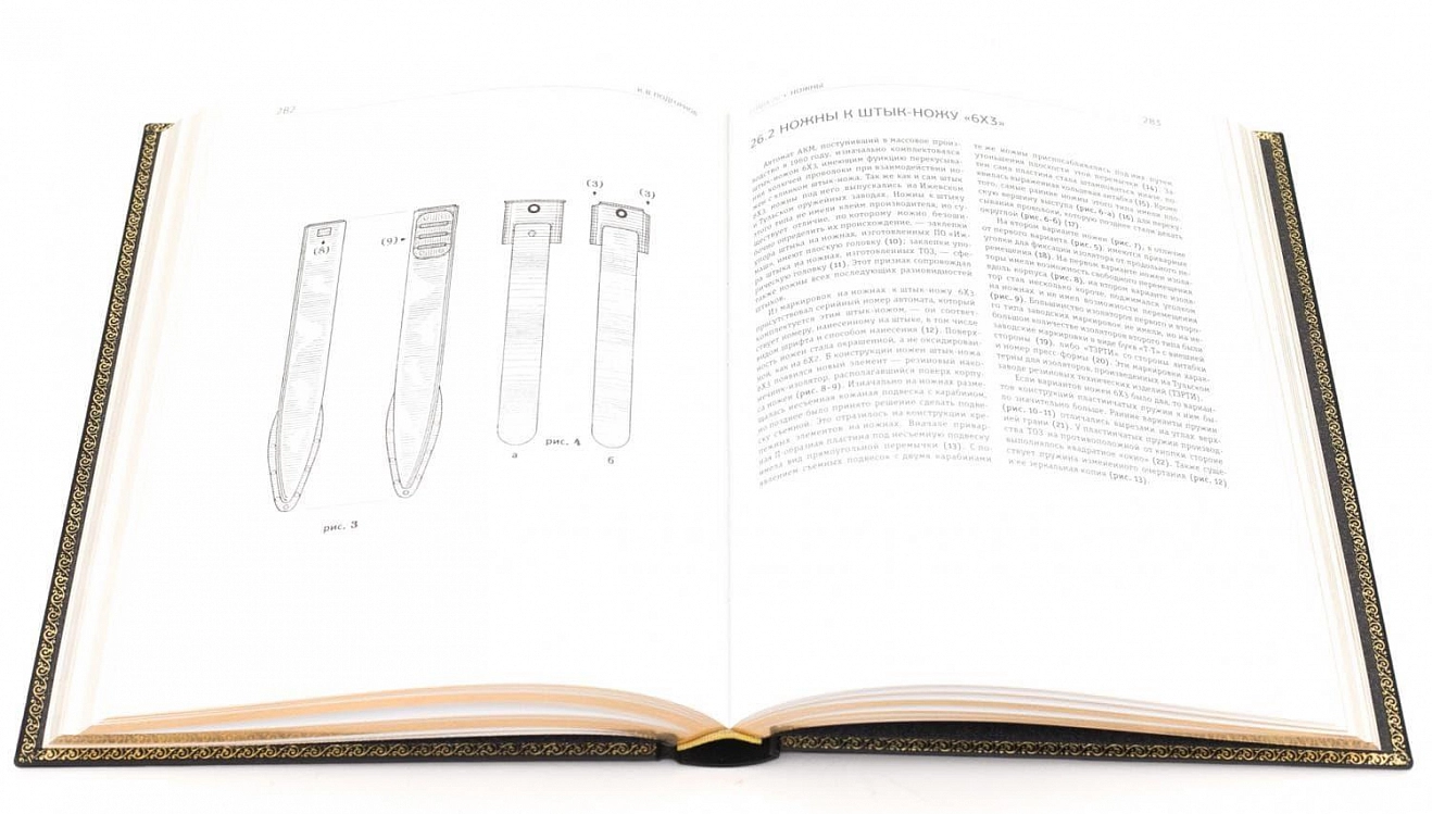 Подарочная книга «Автоматы и ручные пулеметы Калашникова. Серийное производство. СССР и Россия. Справочник» Подгорнов К.В. АННОТАЦИЯ С-Пб. Издательство Атлант. 2019. Книга представляет собой иллюстрированный справочник-определитель всех частей и механизмов серийных автоматов и ручных пулеметов Калашникова с краткими комментариями к каждой из них, указывающими на суть и период введения в производство того или иного конструктивного отличия; также в работе подробно освещены вопросы маркировки и клеймения оружия и его элементов. Иллюстративная часть книги состоит из графических изображений и фотографий автоматов и пулеметов Калашникова. Графическая часть представлена рисунками, выполненными автором. Фотоизображения автоматов и ручных пулеметов Калашникова показывают динамику изменения внешнего вида оружия в зависимости от изменения конструкции его отдельных частей. Данное издание не имеет аналогов в нашей стране и за рубежом, поскольку описанный в книге материал ранее не систематизировался и не публиковался. ОФОРМЛЕНИЕ Переплет из натуральной кожи. Художественное цветное тиснение обложки и корешка. Золочёный с трёх сторон обрез. Ручная накатка орнамента по периметру форзаца.