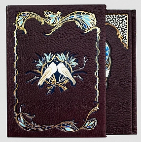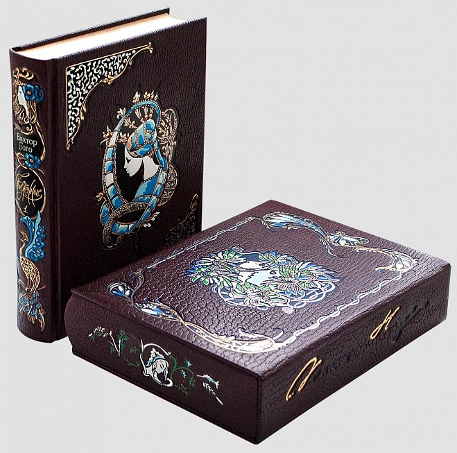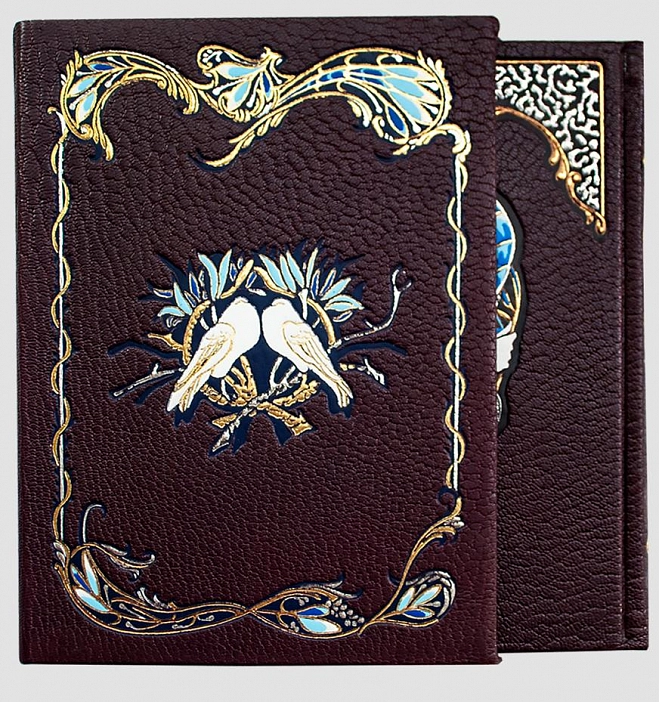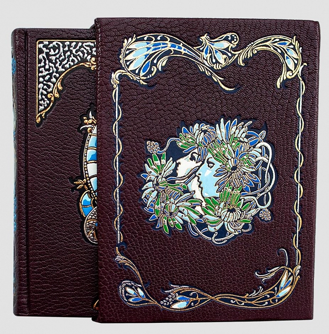 Напечатано в Словении лимитированным тиражом на элитной бумаге G-print. Книги переплетены в кожу Maroken (Франция) и помещены в уникальный по сложности выполнения кожаный футляр ручной работы с тиснением фольгой на всех сторонках футляра. Необычный переплет с тиснением 9-ю различными цветами фольги,оригинальные заставки, изящные уголки и рамки и трехсторонний золотой обрез создают потрясающе изысканное обрамление издания, способного заинтересовать самого придирчивого ценителя прекрасного.