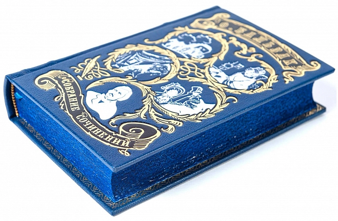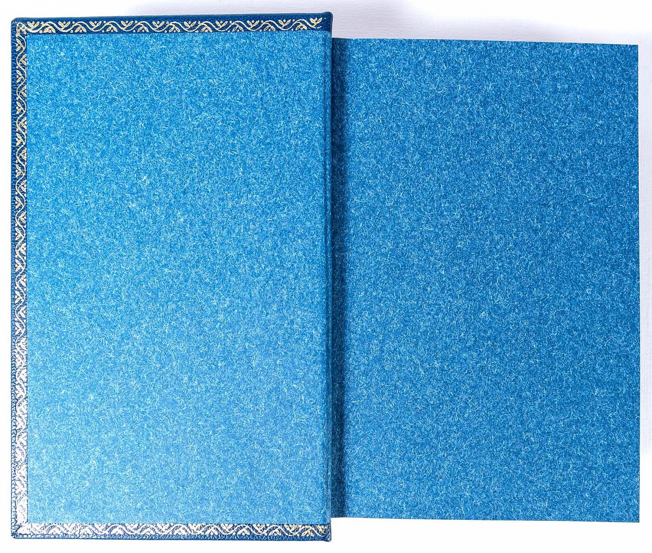 Богато оформленное собрание, представлено в подарочном издании. Цельнокожаный переплёт ручной работы, украшен цветной кожаной вставкойзолотым иблинтовым тиснением. Корешок декорирован бинтами. Текст книг напечатан на мелованной бумаге . Обрез оформлен в технике "Перо павлина". Ляссе из шёлковой ленты. Форзац цельный из дизайнерской бумаги. Дублюра окатана золотом. Перчатки и сертификат по желанию (может быть именным) в комплекте. Цветовое сочетание переплёта и упаковки может отличаться от представленных на фото.