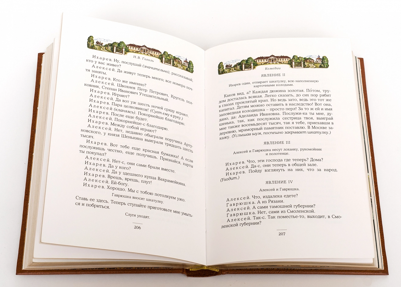 В собрание вошли следующие издания. Подарочные книги "Мертвые души" Н.Гоголь (в 2-х томах). «Мертвые души» потрясли всю Россию. Подобное обвинение необходимо было современной России. Это — история болезни, написанная мастерской рукой», писал в своих дневниках русский революционер, публицист и философ А.И. Герцен. В произведении отражены самые разные характеры и личности. Города и веси проносятся перед взором героя своего времени — Чичикова, и снова, и снова раскидывает крылья птица-тройка... Живое слово, тонкий юмор, внимание к мельчайшим деталям человеческой жизни и быта и вдохновенные описания красот русской природы — все это доставит величайшее наслаждение читателю — ценителю русской классической литературы.