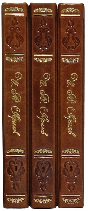 Богато оформленное собрание, представлено в подарочном издании. Цельнокожаный переплёт ручной работы, украшен золотым иблинтовым тиснением. Корешок декорирован бинтами. Текст книг напечатан на офсетной бумаге, дополнен цветными иллюстрациями. Обрез оформлен в технике "Перо павлина". Ляссе из шёлковой ленты. Форзац цельный из дизайнерской бумаги.Дублюра окатана золотом.