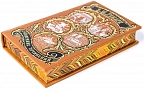 и золотым тиснением. Изображённые на обложке узнаваемые сюжеты и образы дополняют дизайн. Корешок декорирован бинтами. Текст книги напечатан на офсетной бумаге. Обрез оформлен в технике "Перо павлина". Ляссе из шёлковой ленты. Форзац цельный из дизайнерской бумаги. Дублюра окатана золотом.