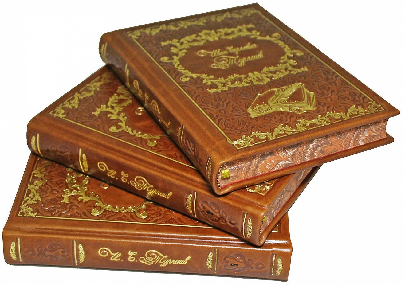 Подарочное собрание сочинений Тургенев И.С. Юбилейное издание (в 3-х томах) АННОТАЦИЯ В издании представлены все направления многообразного творчества великого русского писателя XIX века, классика русской и мировой литературы И.С.Тургенева - рассказы, повести, романы, пьесы, стихотворения в прозе. ОПИСАНИЕ Богато оформленное собрание, представлено в подарочном издании. цельнокожаный переплёт ручной работы, украшен блинтовым и золотым тиснением. Корешок декорирован бинтами. Текст книг напечатан на офсетной бумаге, дополнен цветными иллюстрациями. Обрез оформлен в технике "Перо павлина". Ляссе из шёлковой ленты. Форзац цельный из дизайнерской бумаги. Собрание представлено в оригинальном подарочном коробе, перчатки и, по желанию, сертификат (может быть именным) в комплекте. Цветовое сочетание переплёта и упаковки может отличаться от представленных на фото.