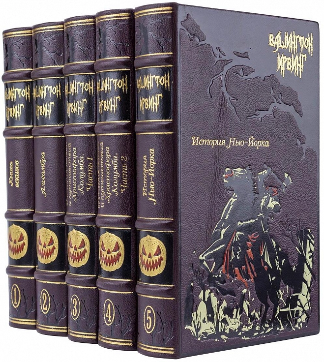 Собрание сочинений Вашингтона Ирвинга в 5 томах. Подарочное оформление, исторический стиль кожаного переплета с уникальным тиснением!