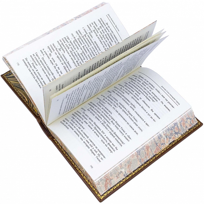 Французский стиль кожаного переплета, тиснение цветное по коже. Обрезы блока страниц и дублюра окрашены в стиль мраморной бумаги. Как всегда использованы только лучшие материалы.