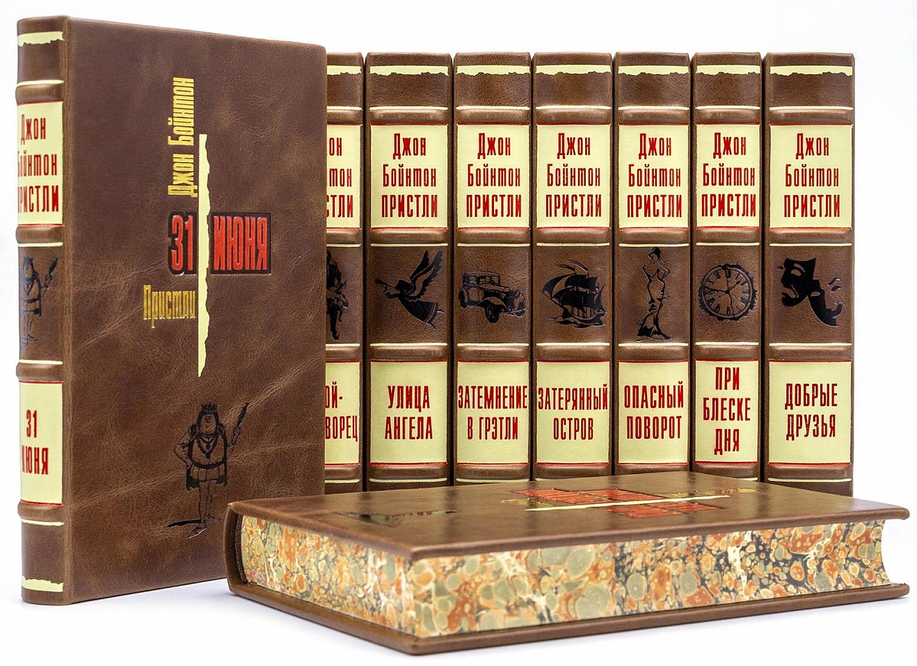 Подарочное издание в кожаном переплёте, собрание произведений Джон Бойнтон Пристли в 9 томах. Французский стиль ручного, кожаного переплета. Специально для данного собрания книг разработан дизайн тиснения. Книги можно заказать на здесь на сайте или приехать к нам на производство и посмотреть как создаются такие удивительные книги.