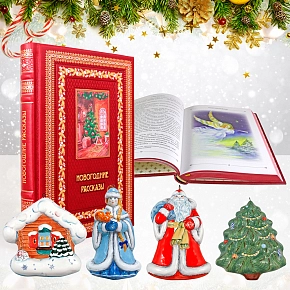 Подарочный набор "Новогодний" с книгой "Новогодние рассказы" и 4-мя игрушками