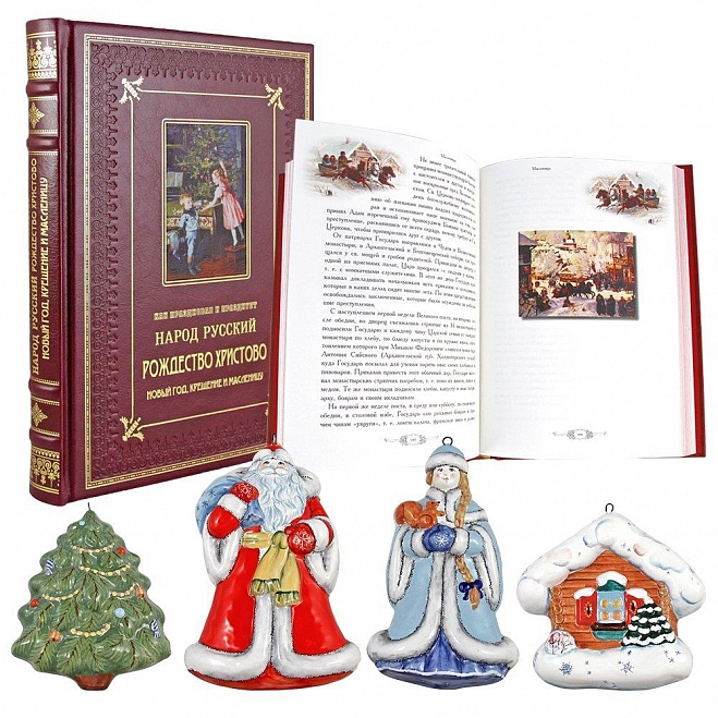 Новогодний подарочный набор с книгой "Как праздновал народ русский" 4 игрушки