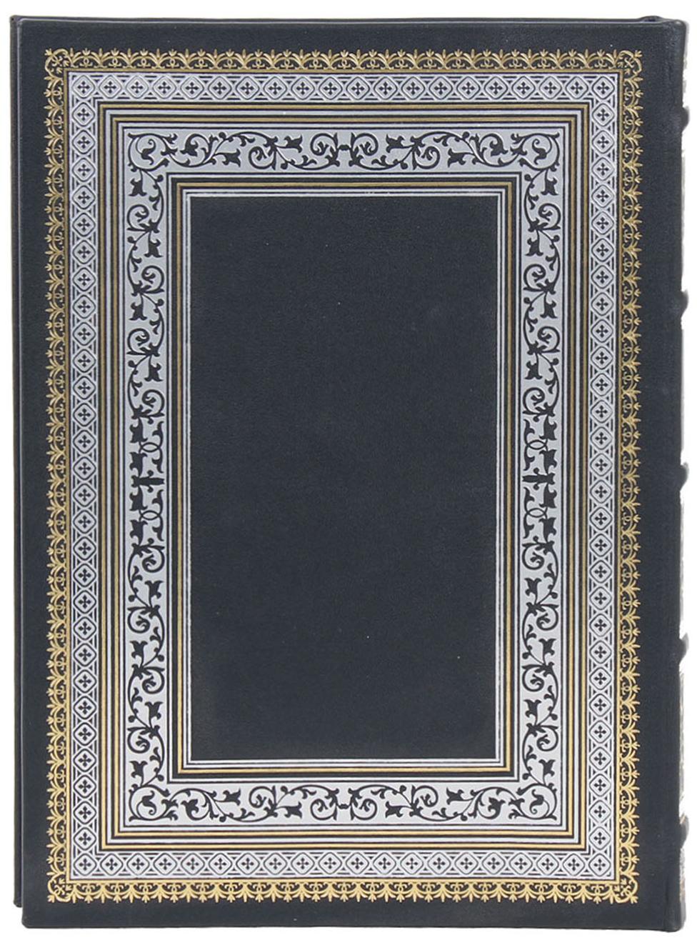 Цельнокожаный переплёт ручной работы, украшен золотым и серебряным тиснением. Корешок декорирован бинтами. Текст книги напечатан на бумаге Palatina Avorio 100 Австрийского производства и дополнен цветными иллюстрациями. Обрез оформлен в технике "Перо павлина". Ляссе из шёлковой ленты. Форзац цельный из дизайнерской бумаги. Дублюра окатана золотом.