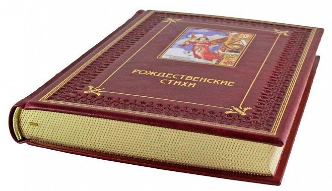 РОЖДЕСТВЕНСКИЕ СТИХИ АННОТАЦИЯ Добрые и светлые рождественские стихи великих русских и иностранных поэтов и писателей. В альманахе собраны стихи Ахматовой, Гумилева, Блока, Бунина, Волошина, Гиппиус, Достоевского, Есенина, Лермонтова, Мандельштама, Набокова, Пастернака, Пушкина, Фета, Ходасевича, Цветаевой и многих других. Книга проиллюстрирована старинными рождественскими и новогодними открытками. ИСПОЛНЕНИЕ Переплёт ручной работы из натуральной кожи. Форзац из дизайнерской бумаги. 4 бинта на корешке, ручной обработки. Каптал золотой из натуральной кожи. Обрез блока торшонированный золотой. Инкрустация кожаной вставкой с печатью. Тиснение блинтовое и золотой фольгой. Ляссе.