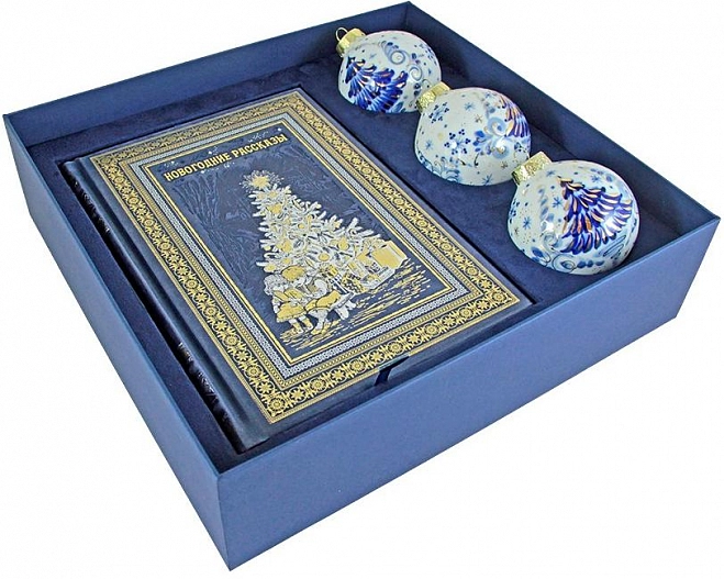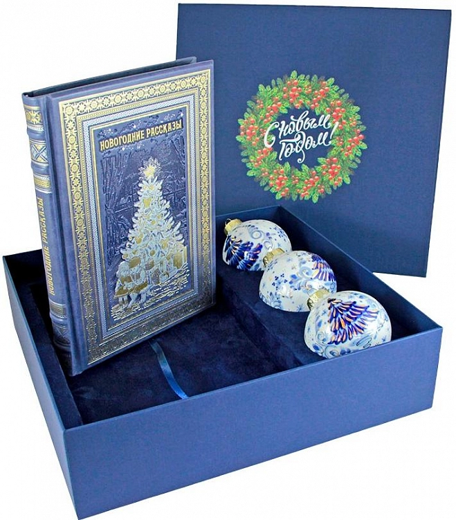 Подарочный набор "Новый год" с книгой "Новогодние рассказы и 3-мя елочными шарами