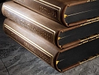 Шелковые каптал и ляссе, форзацы из дизайнерской бумаги, переплеты и футляр украшены тиснением золотой фольгой