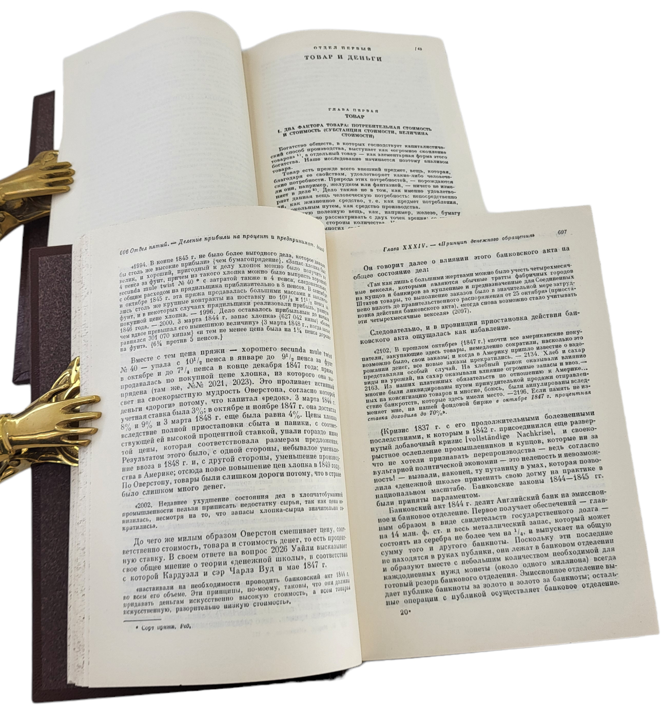 Подарочные книги "Капитал" Карл Маркс, в 4-х томах АННОТАЦИЯ Критика политической экономии. В состав «Капитала» в качестве четвертого тома включены также рукописи «Теории прибавочной стоимости» (1861–1863 гг.), посвященные критике буржуазной политэкономии. ОПИСАНИЕ Издательство политической литературы. 1978. Оригинальное издание, в футляре. Формат 14х22 см. Блоки в отличном состоянии. ОСОБЕННОСТИ ПЕРЕПЛЕТА: Ручная работа, переплёт из натуральной, шагреневой кожи; Окатка бинтов 22-х каратным золотом, крапленый обрез; Дизайн обложки идентичен оригинальному. Индивидуальный футляр с кожаной окантовкой.