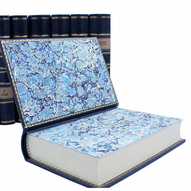 Полное подарочное собрание сочинений Владимира Высоцкого (в 8-и томах) АННОТАЦИЯ Собрание сочинений В. С. Высоцкого в семи томах и один дополнительный том, издательство Вельтон, ББЕ. Германия (V. Panjuta & Velton Verlag GmbH), год выпуска 1994 год. Данное собрание является фундаментальным и самым полным, в нем исправлены опечатки, ошибки допущенные ранее в изданиях СССР, США и России. Издано в Германии по договору от 28 сентября 1992 года с наследниками Владимира Высоцкого - Мариной Влади, С. В. Высоцким и другими членами семьи. ОФОРМЛЕНИЕ Французский цельнокожаный переплет из натуральной кожи. Кожаные вставки бежевого цвета на обложке и корешке книги. Тиснение золотое, блинтовое и цветное. Обрезы книжного блока вручную отшлифованы и окрашены с нанесением узора золотом. На внутренней стороне обложки - дублюра, украшена золотым узором вручную. Форзац из мраморной бумаги разделен слезурой из кожи. СОДЕРЖАНИЕ Том 1 - Песни и стихи с конца 50-х по 1967 год. Том 2 - Песни и стихи с 1967 по 1970 год. Том 3 - Поэзия и песни с 1971 по 1972 год. Том 4 - Поэзия и песни с 1973 по 1974 год. Том 5 - Песни и стихи с 1975 по 1980год Том 6 - Опыты с прозой и драматургия, дневники, записи, письма. Том 7 - Произведения написанные в соавторстве. Дополнительный том - Биография, дискография, фильмы, спектакли с участием Владимира Высоцкого, список концертов и алфавитный указатель произведений.