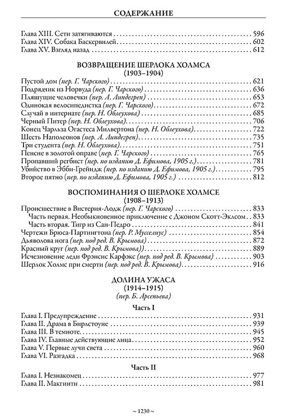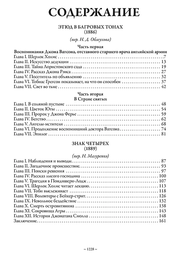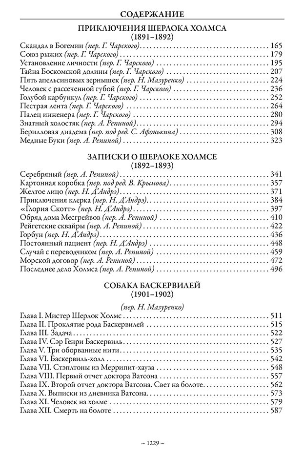 Издание включает четыре повести о Шерлоке Холмсе: «Этюд в багровых тонах», «Знак четырех», «Собака Баскервилей», «Долина ужаса» и пятьдесят шесть рассказов, которые вместе составляют полное собрание всех канонических произведений о знаменитом сыщике. Все они расположены в сборнике в хронологическом порядке их появления в печати. В книгу включены также пять рассказов, не входящих в основные сборники. Издание украшают иллюстрации сразу нескольких художников: Р. Бродерса, А. Гилберта, Р. Куртуа, С. Пэджета, Дж. Хатчинсона и Ф. Уайлса.