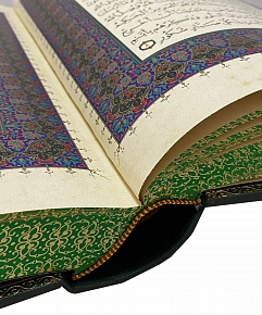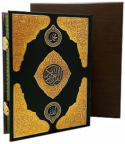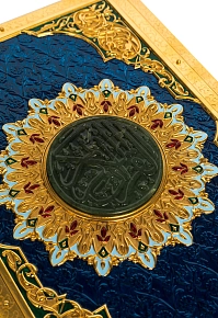 Подарочная книга "Коран" С филигранью (золото) с гранатами и гидротермальными изумрудами.