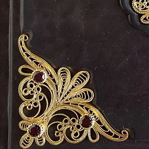 Подарочная книга "Тора с Гафтарот" С филигранью (золото) и гранатами.